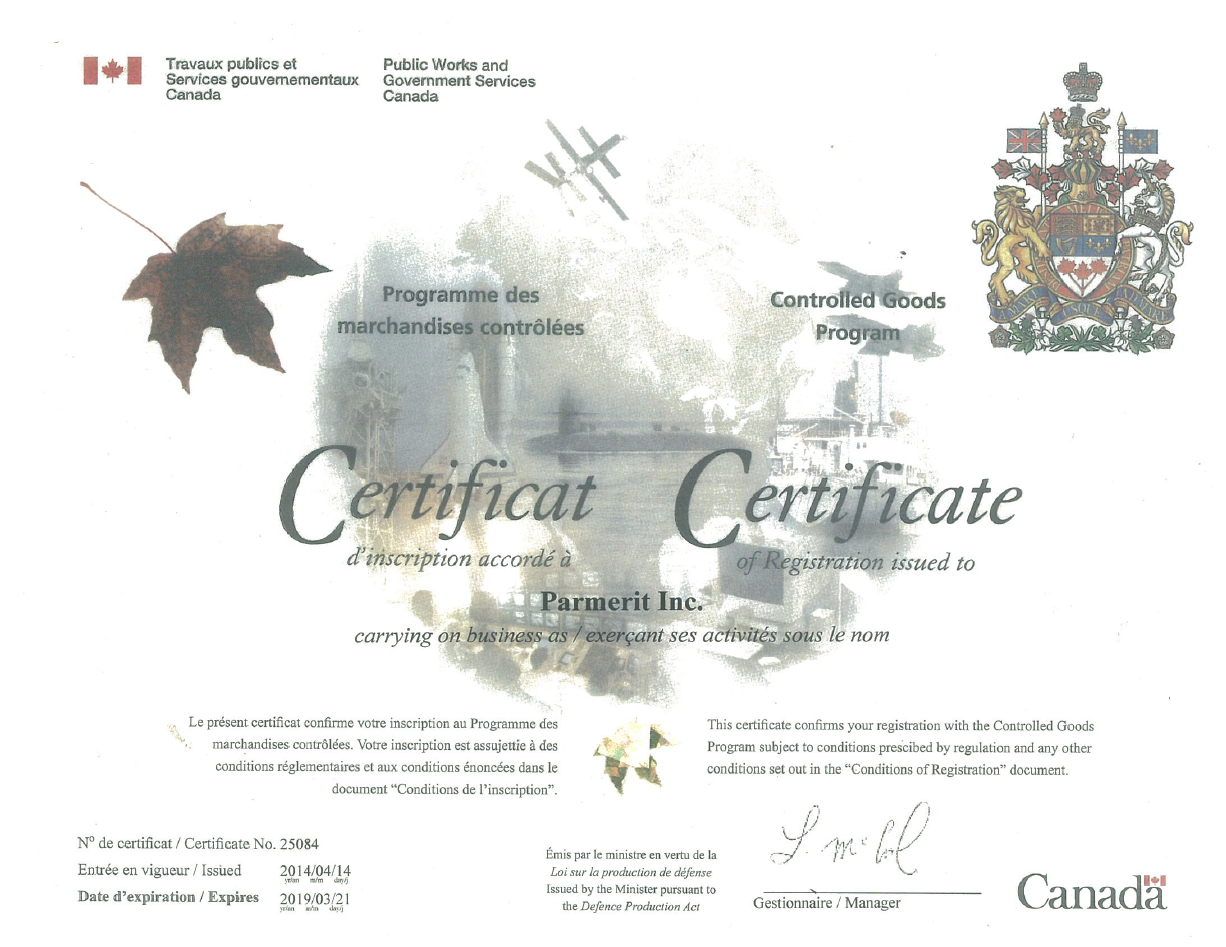 - Canadian Controlled Goods Certified view certificate
